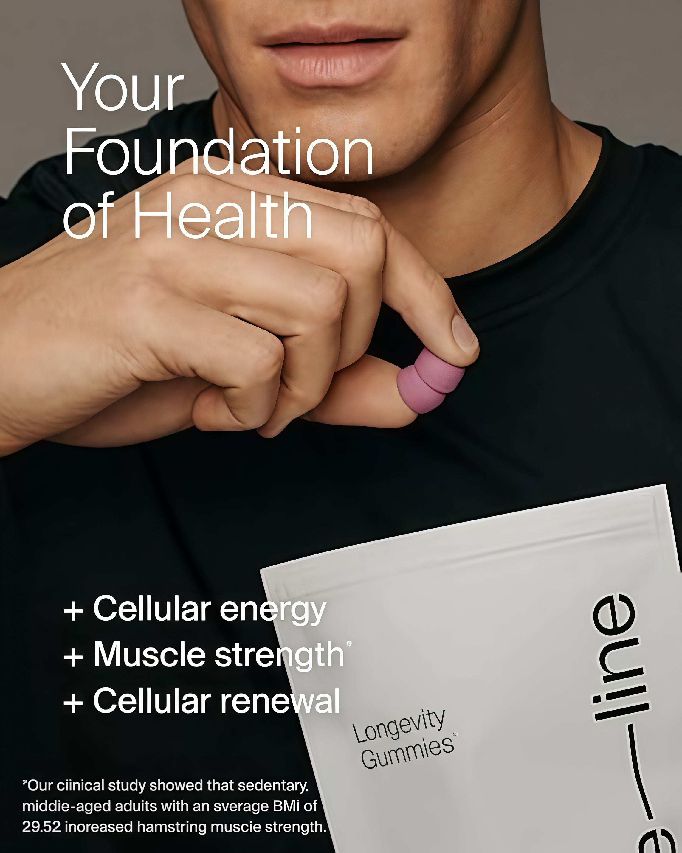 The only clinically proven Urolithin A gummy. Shown to improve cellular energy and muscle strength.*